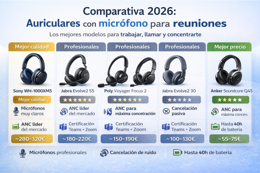 Si quieres profundizar más en qué auriculares profesionales elegir, visita nuestra comparativa Jabra vs Logitech para teletrabajar.